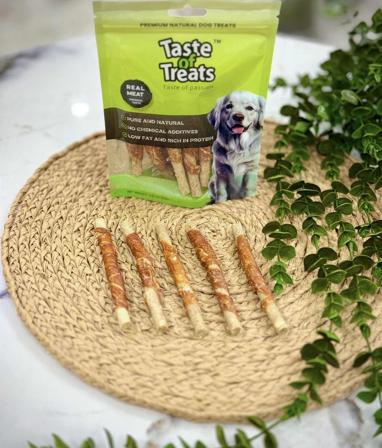 تشویقی بیسکویت مدادی با دور پیچ مرغ Taste of Treats صد گرمی